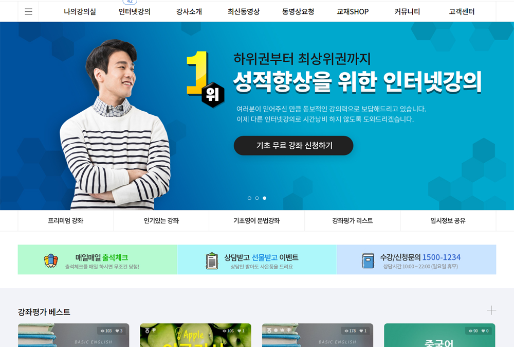 관리자가 강좌&강의를 등록하는 관리자 독립형 인터넷강좌 솔루션으로 동영상 다운로드 및 스트리밍 서비스가 지원되어 누구나 편리하게 인터넷강의 솔루션을 사용하실수 있습니다.