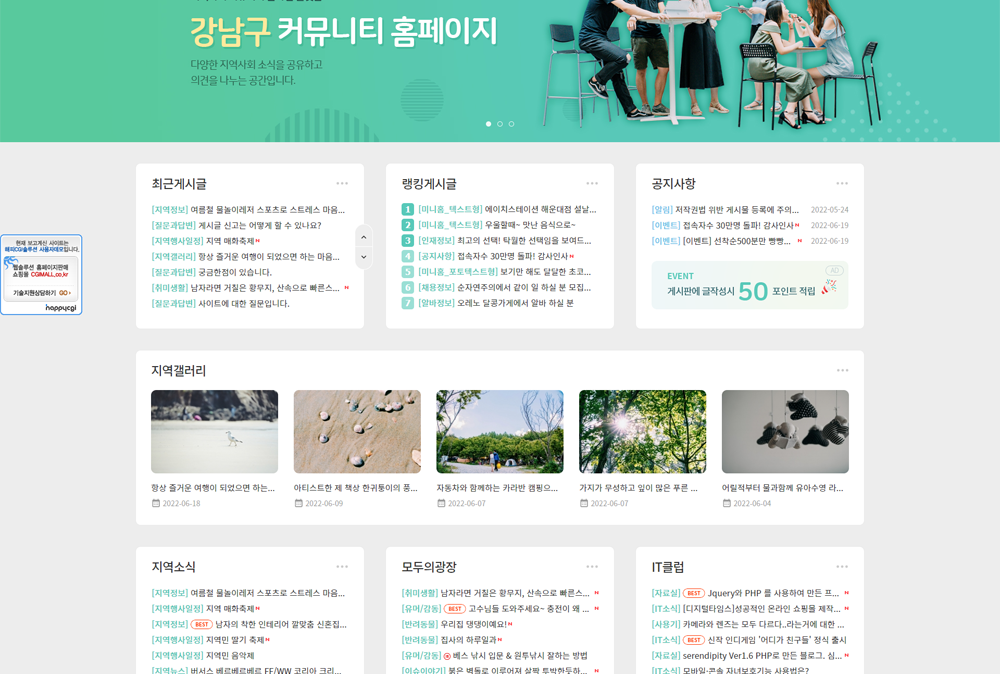 | 게시판별 개별 폼설정, 다양한 카테고리 설정 등 하나에서 열까지 내 마음대로 만들 수 있는 커뮤니티솔루션으로 디시인사이드,무신사,SLR클럽,뽐뿌등 각종 커뮤니티 사이트 제작이 가능합니다.